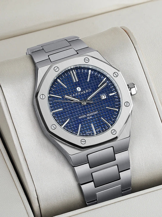 Men's Casual Fashion Quartz Watch - Waterproof Stainless Steel with Luminous Date and Week Display